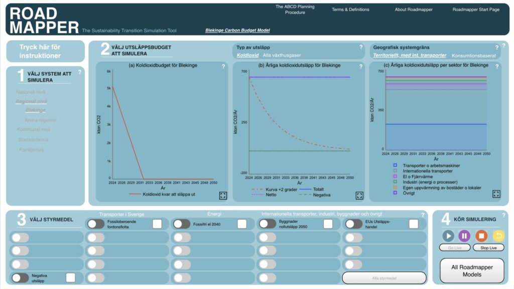 Modellen som togs fram för att beräkna Region Blekinges koldioxidbudget och vilka effekter har olika åtgärder.